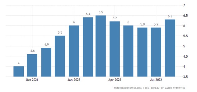 This week’s meeting of the US Central Bank (Federal Reserve) is expected to deliver another supersized interest rate hike following the reacceleration in underlying inflation (CPI). Just as US share-markets had started pricing in less aggressive interest rate increases, data published early last week revealed growth in core CPI of 0.6 per cent, instead of an expected 0.3 per cent, which took its annual rate from 5.9 per cent in July to 6.3 per cent in August.