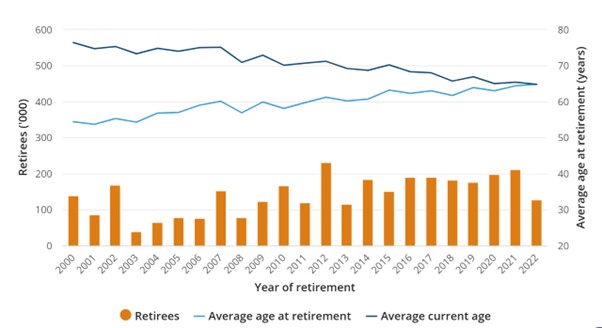 The Australian Bureau of Statistics (ABS) released its latest data on retirement patterns and plans of people aged 45 years and over, during the 2022-23 Financial Year.