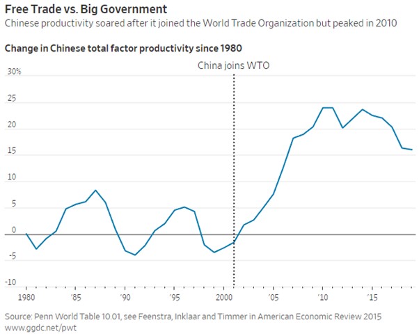 A bigger picture problem for China is its workforce is shrinking and aging. China’s population began to shrink last year, and productivity has been falling for more than a decade after an extraordinary growth period following China’s entry into the World Trade Organization in 2001.