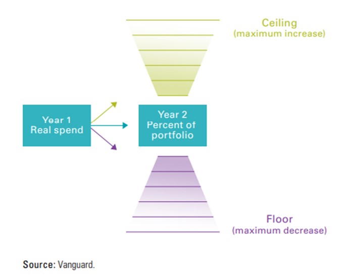 This rule allows retiree to benefit from an outperformance by spending a portion of the gains, while weathering the underperformance without a significant reduction in spending.